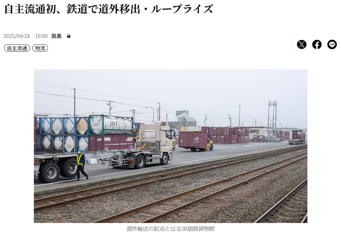 https://dailydairynews.jp/post/7305 - JR貨物と佐川急便と業務提携を結び5月8日から鉄道貨物輸送を使った生乳の道外移出を開始いたしました。