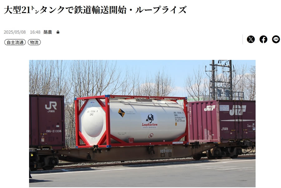 - 日刊酪農乳業速報で弊社で手がける生乳卸売事業の鉄道貨物輸送が8日から開始され たことについての記事が掲載されました。